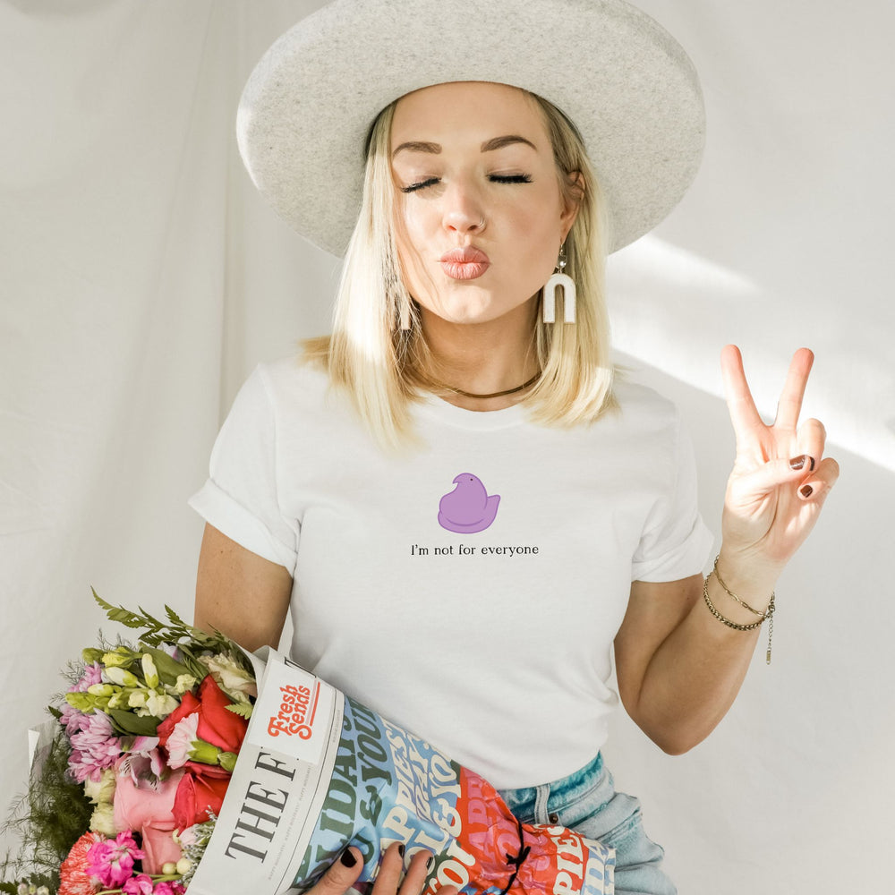 Some chicks love the spotlight—others prefer to peep from a safe distance. The Anti-Social Chick Tee is for the introverted, the selectively social, and anyone who’d rather binge Easter candy alone than make small talk at brunch. Featuring a lone marshmallow-inspired chick, this tee delivers big “don’t talk to me, I’m snacking” energy. Whether you love or hate Peeps, one thing’s for sure—this tee is sweet, soft, and unapologetically you.